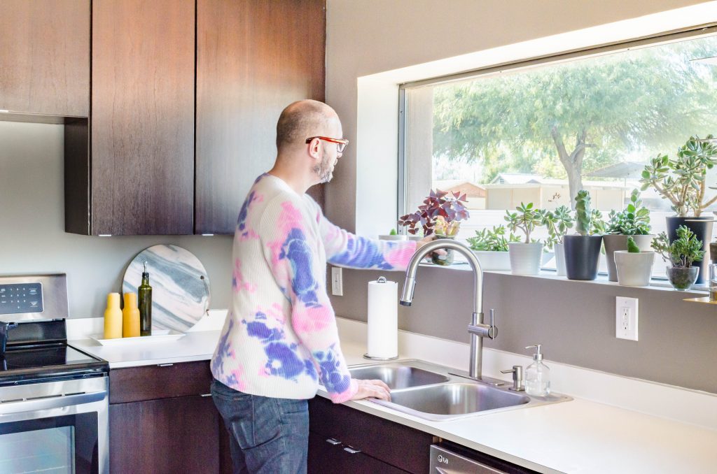 Enter Colby and Peter, Coronado residents living in a one-bedroom remodeled craftsman bungalow with their two dogs, Cameron and Zev. Colby purchased the couples home a few years before the pair met. Now, the equity in their home coupled with their need for more space has them considering their options, cash in on the growth or stay around for the party?  The couple spent an afternoon showing us around their cozy quarters and their expansive lot while sharing their expansion plans and anxieties.