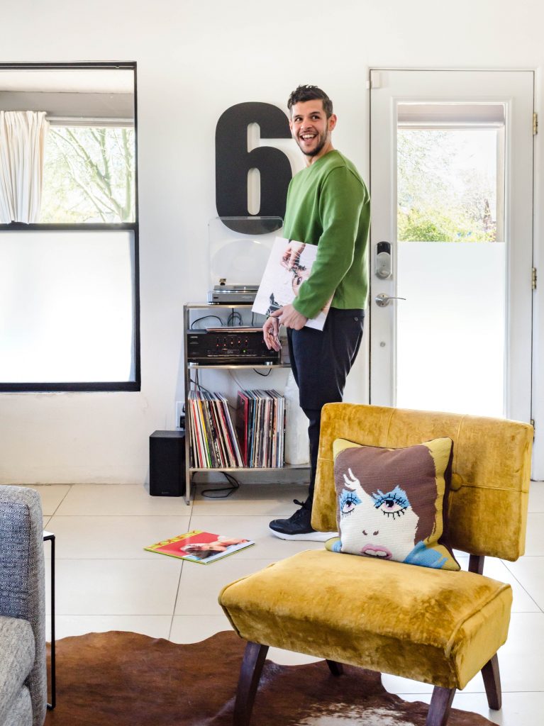 P: An app.  This photo shoot is happening today on the anniversary of us meeting. Our first date was at The Main Ingredient, I showed up early, had a beer, then he texted me saying he forgot his wallet at home … had another beer, thought, wait maybe he saw me and thought, quick, what can I say, “I forgot my wallet …† and then he’d never find it , but he made it.  I wore this overpriced ratty tank top that says ‘Let’s Stay Strangers’, I never wear it anymore cause I’m 30 now but it’s one of the things I’ll never throw out.