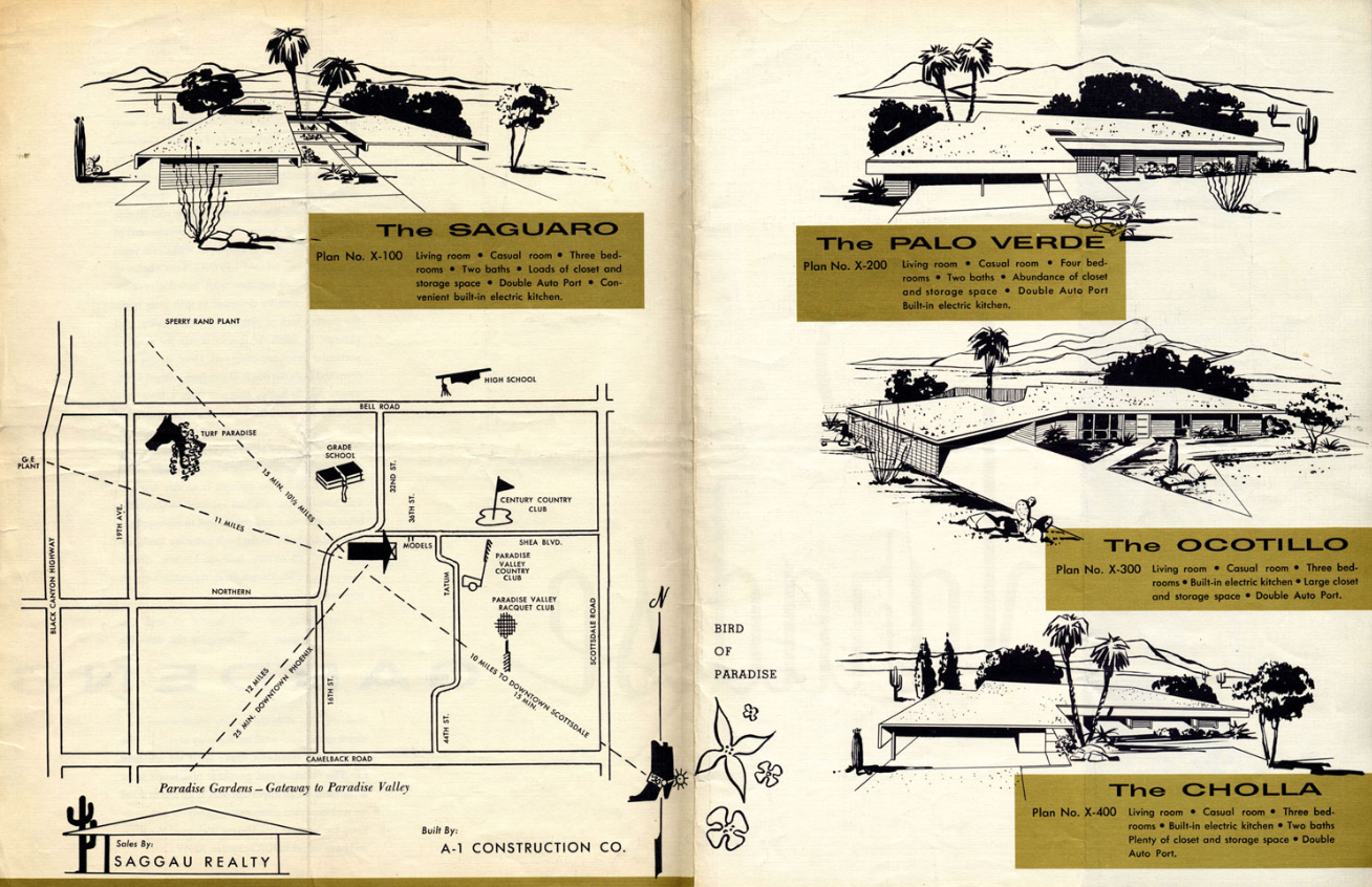 The neighborhood of Paradise Gardens has a unique history with a little controversy amongst the “MoPho” crowd. The land was originally bought by a developer, Robert Altherr, who contracted out Beadle’s firm to draw architectural plans for the tasteful, modern homes to be built in “Paradise Gardens.” The history is best explained by mid century historian/enthusiast Alison King of Modern Phoenix. The gist of the story is that when builders cut corners, architects are no longer happy and don’t want their name on the final product. The neighborhood, today, is considered a Beadle neighborhood and the homes are coveted time capsules.