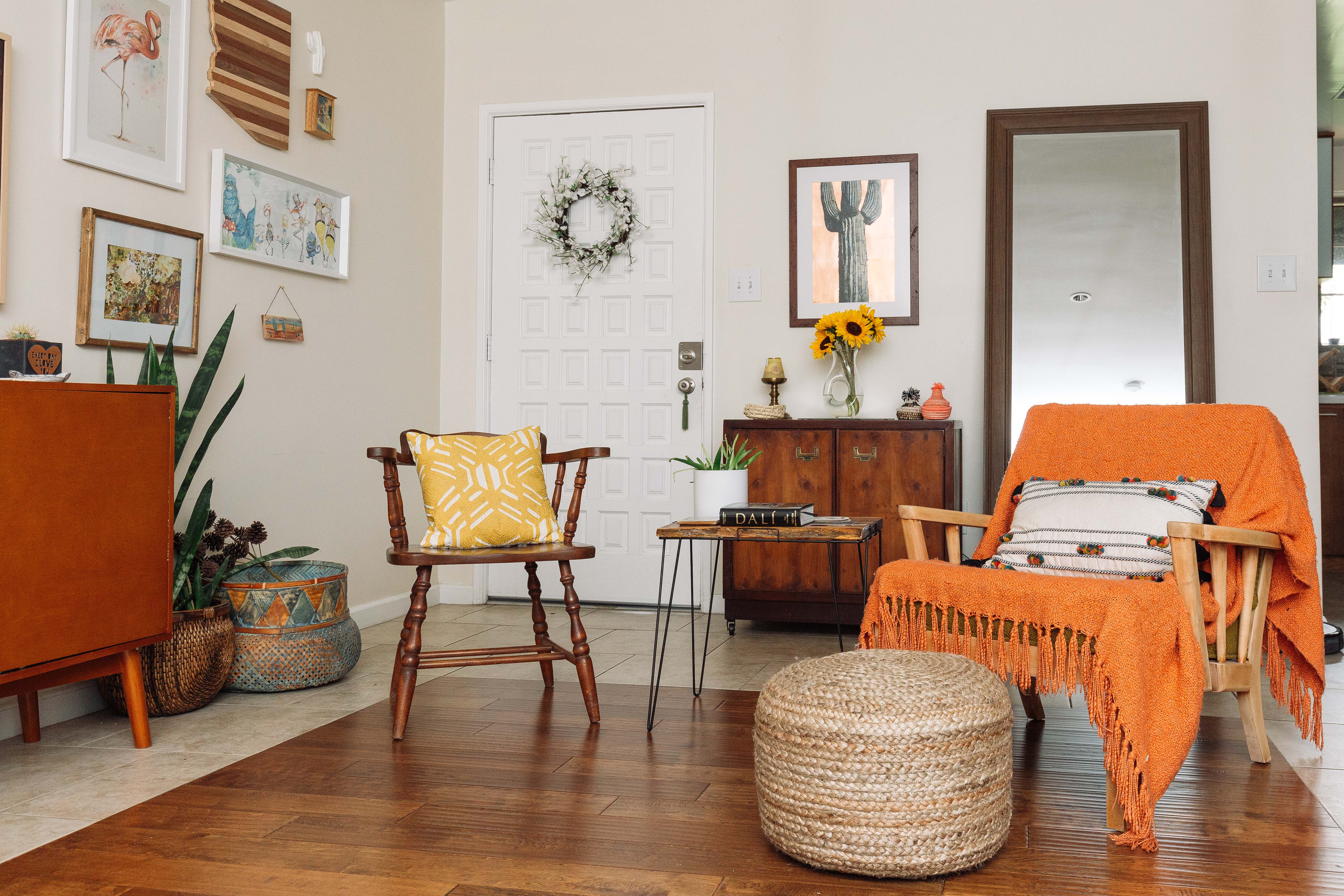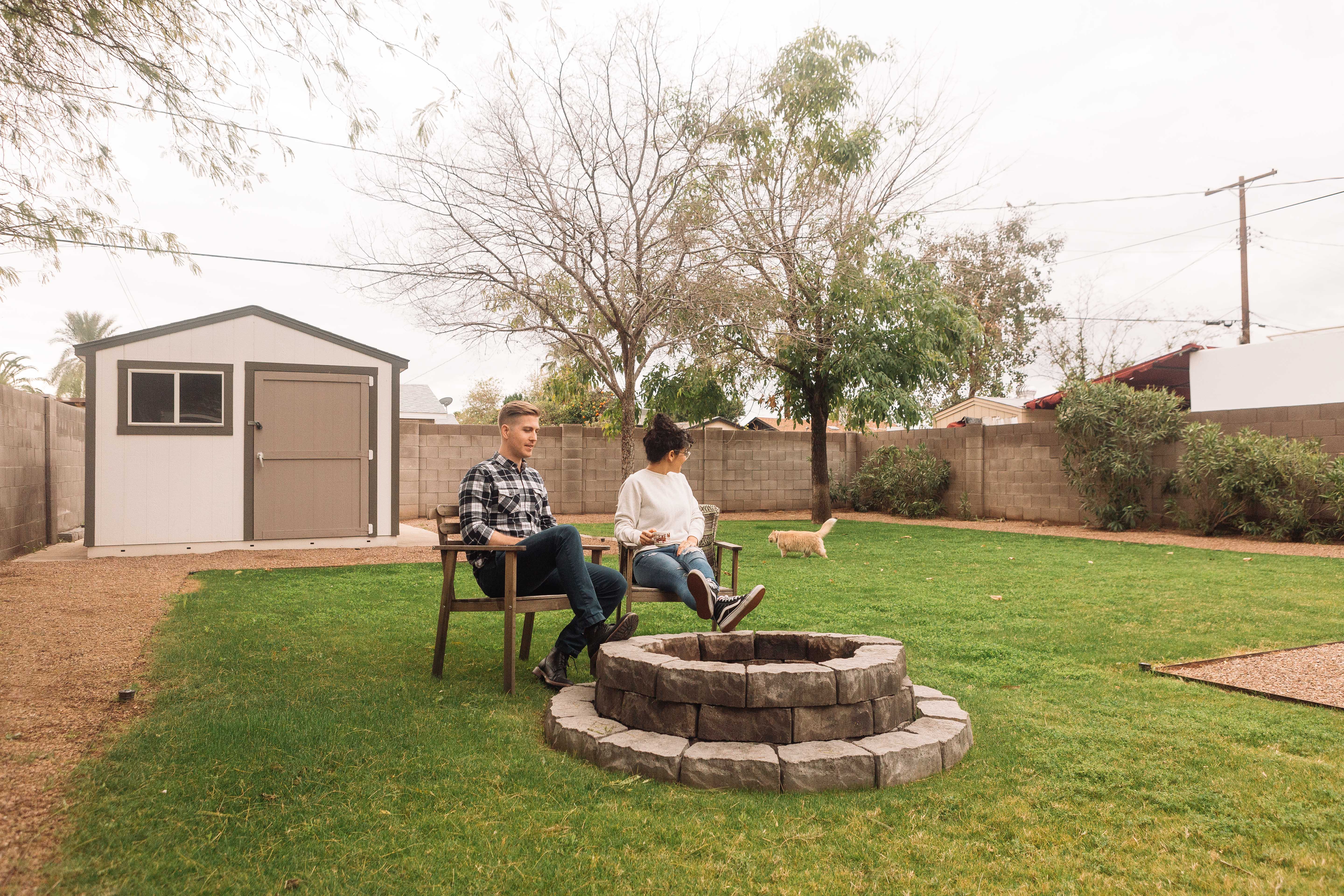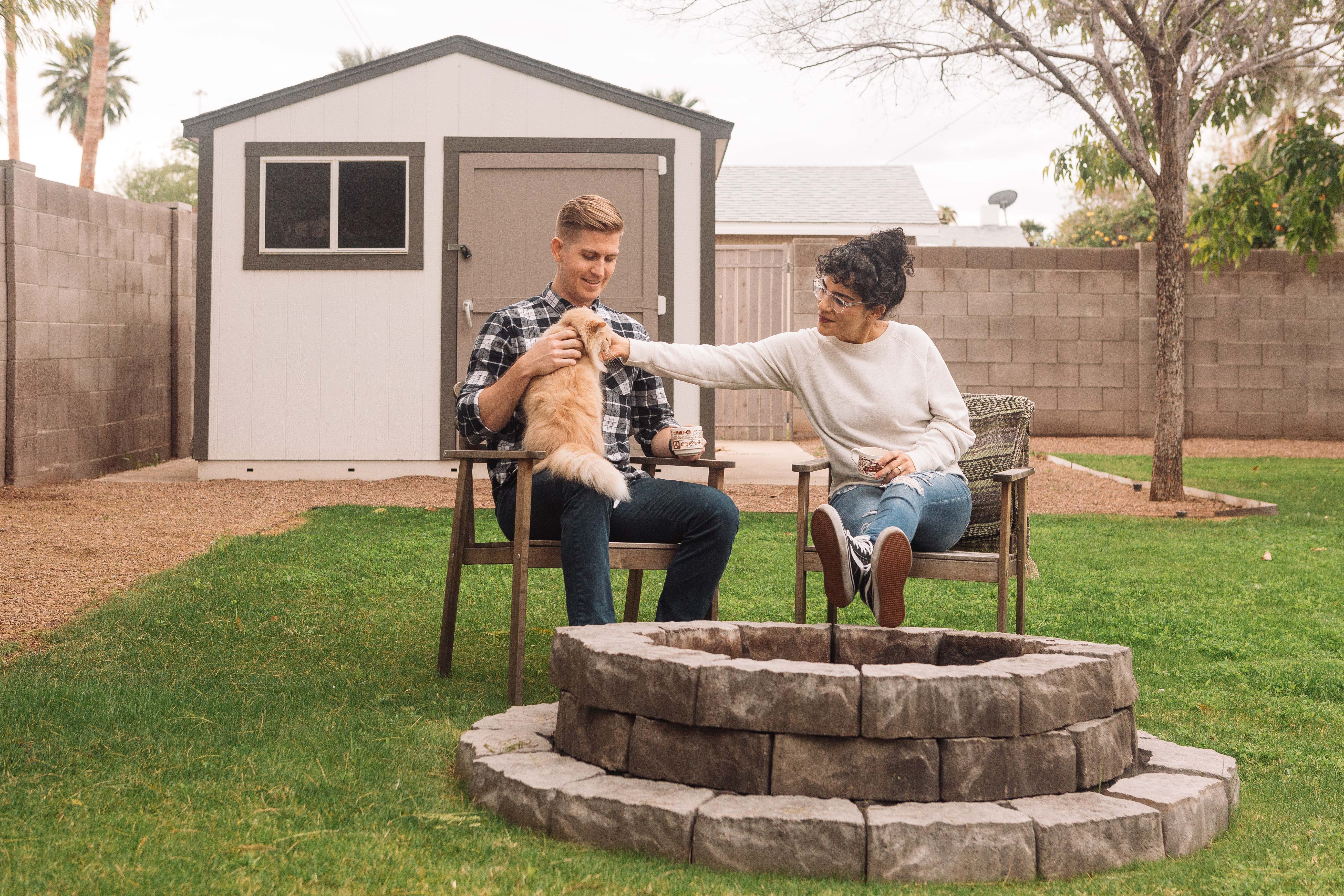 P: The first project we undertook was removing the huge tree within a foot of our house that was threatening our foundation. We felt really bad taking it down as it was a beautiful tree, but it just wasn’t worth the risk to keep it. With a little prodding from our chainsaw-wielding neighbor and a desire to save a few bucks, we decided to throw caution to the wind and down came the 40 foot tree. Things didn’t go quite as planned and there was some collateral damage to a bush (RIP), but no one was hurt, and we now have a great seating area out front that we have always wanted! Our next minor project is to add a glass storm door to the front to help us bring more light into our living room. Our next major project is to replace our single pane windows, something that is much needed, but also quite expensive!