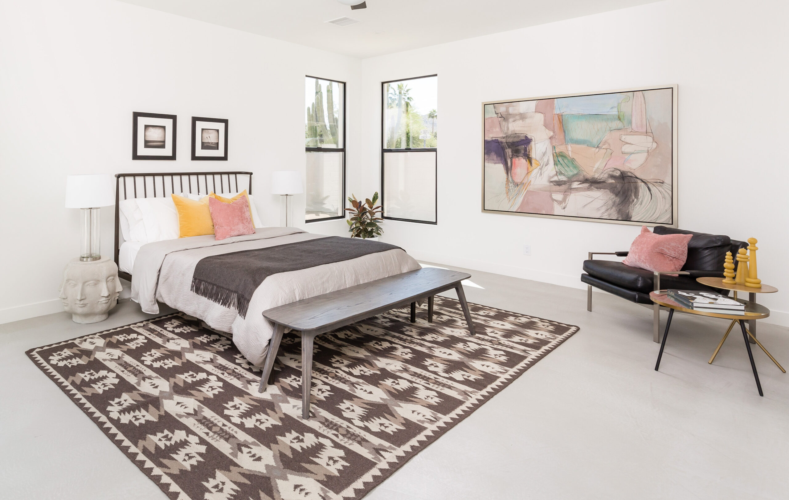 Marrying the matte density of the desert and sharp subtle shine of modernity came forward in this Al Beadle remodel in our feature, Onyx at Paradise Gardens.  Staying true to its location Onyx was filled with pieces that effortlessly lead the outdoor landscape inside. Neutral Desert tones accentuating uniquely modern pieces- all framed within an iconic midcentury build.
